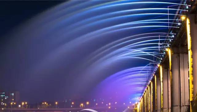 ▲盤浦大橋月光彩虹噴泉:盤浦大橋全線設(shè)置380個噴口,啟動時會有水柱噴出,非常壯觀,吉尼斯世界記錄大全將之列為全世界最長的橋梁噴泉表演。