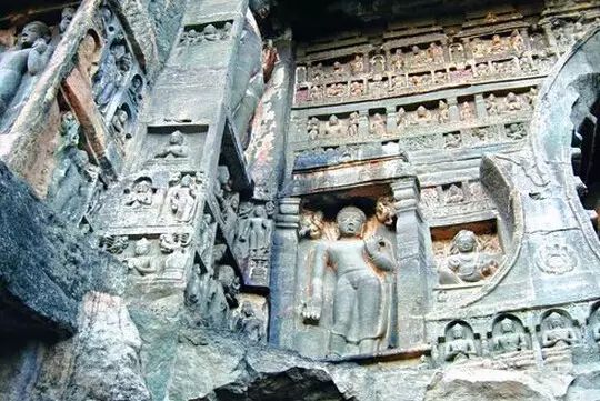 ▲阿旃陀石窟:古印度佛教藝術(shù)遺址。始鑿于公元前2世紀(jì),直延續(xù)到7世紀(jì)中葉。中國高僧玄奘曾在7世紀(jì)初朝圣阿旃陀。