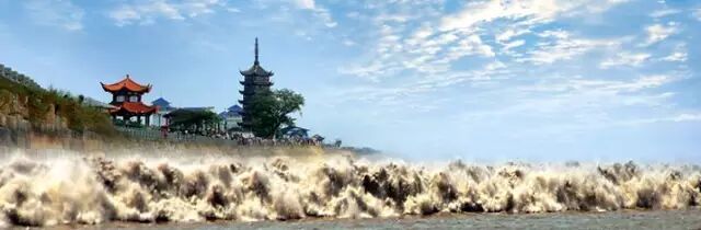 ▲杭州灣喇叭口:錢塘江,古稱浙,全名“浙江”,又名“折江”、“之江”、“羅剎江”,錢塘江潮被譽為“天下第一潮”,是世界一大自然奇觀,它是天體引力和地球自轉(zhuǎn)的離心作用,加上杭州灣喇叭口的特殊地形所造成的特大涌潮。