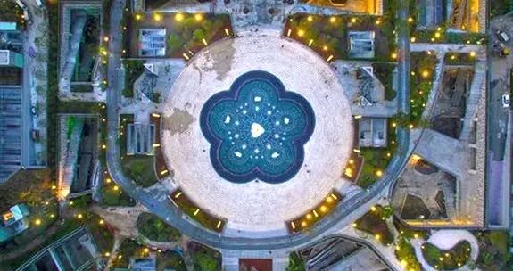 ▲武林廣場:場處武林門地片內(nèi),故名。周圍新建高樓林立,遂成杭城繁華而花園式的中心廣場。一九八五年建成廣場噴泉,泉池直徑為36米,形似五瓣梅花,花芯為跳紅綢舞的三少女塑像。