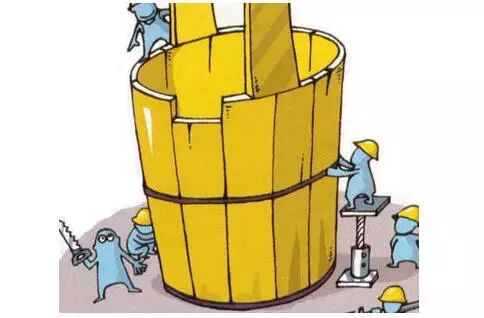組成木桶的木板如果長短不齊,那么木桶的盛水量不是取決于最長的那一塊木板,而是取決于最短的那一塊木板。