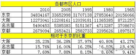下圖:日本top都市圈的人口變化情況,即使同2-4位的大都市相比,東京的首位度也愈發(fā)提升。