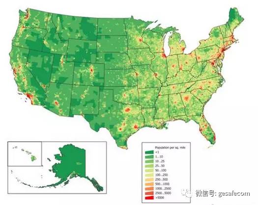 為了直觀起見,我們看一個美國人口分布圖,如下所示: