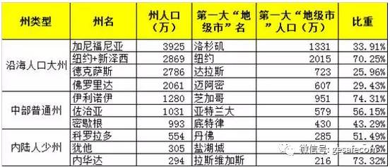 從上表可以看出,美國各州最大“地級市”的人口占全州比重大都超過1/3,一些州甚至達(dá)到70%。