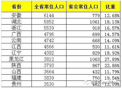 2000萬以下的小型省:省會人口達(dá)到300-600萬。