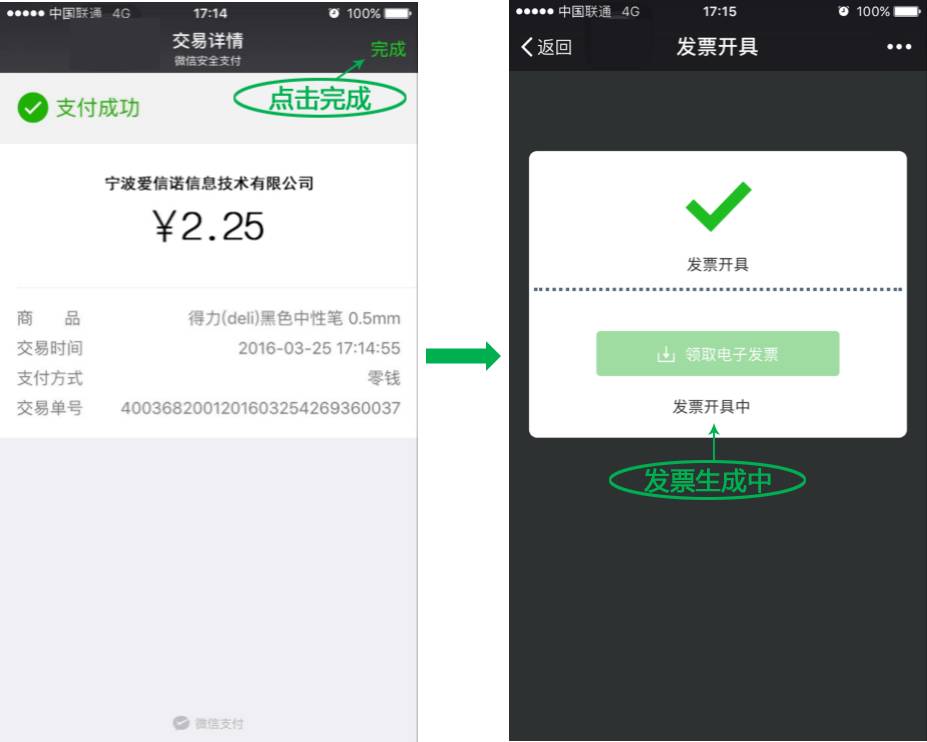 ↓ 步驟2:支付完成,發(fā)票生成中。