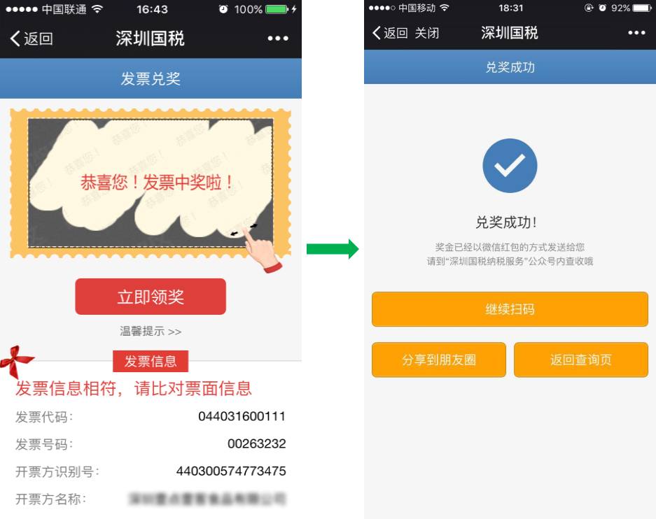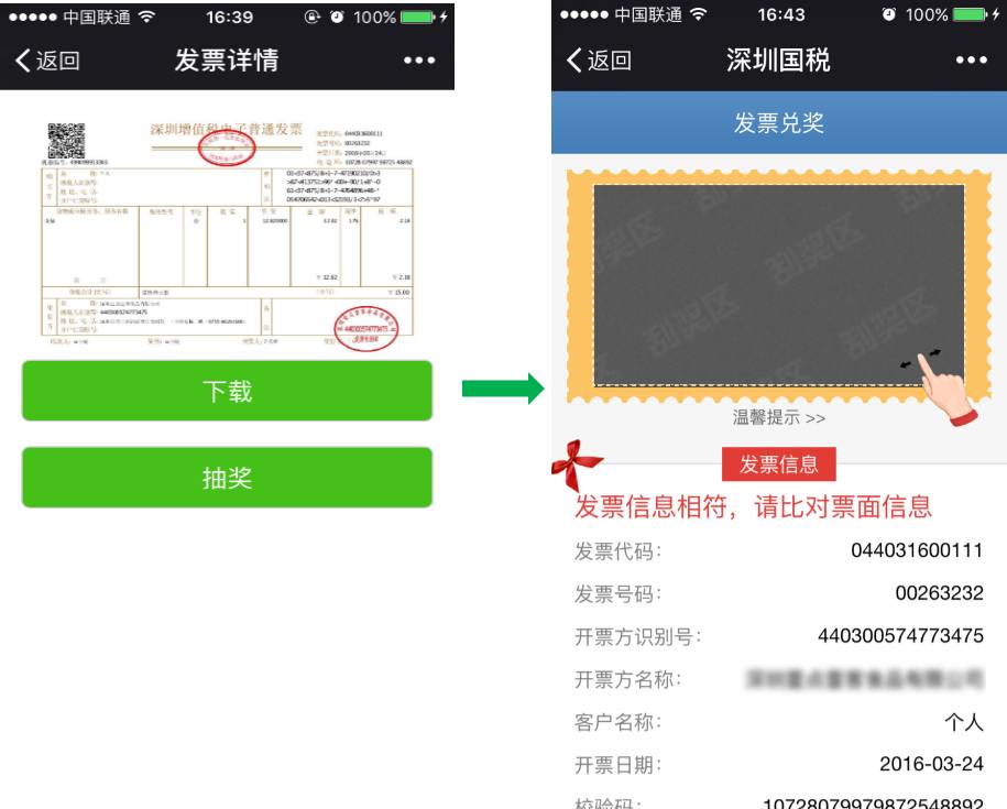 ↓ 步驟2:下載、抽獎,然后和紙質(zhì)發(fā)票一樣,享受刮抽有驚喜: