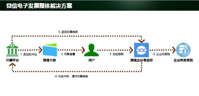 該解決方案調(diào)用了微信多個產(chǎn)品能力,通過微信公眾號、卡包、掃一掃、企業(yè)號、微信支付零錢包等提供的整體連接能力,與眾多行業(yè)合作伙伴一起,實現(xiàn)了電子發(fā)票的收納、歸集、流轉(zhuǎn)、報銷、入賬、再消費的無縫鏈接,全程實現(xiàn)無紙化。(后附詳細(xì)演示)